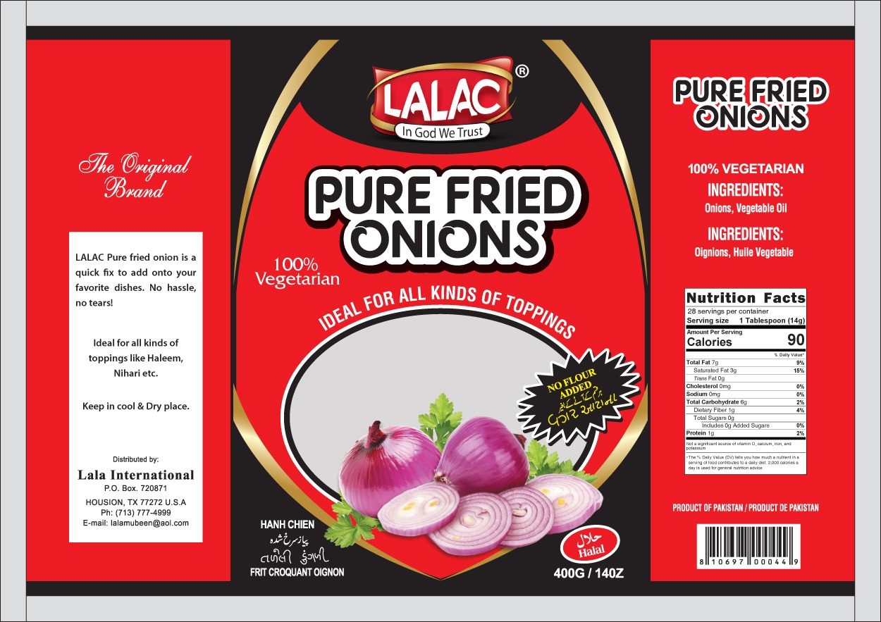 Product Description: With LALAC Pure fried onion easy to make your favorite dishes like Qorma, Biryani etc, all you need recipe spice mix and meat, No hassle to cut raw onion and NO TEARS, DISH IS REAY IN AN HOUR.